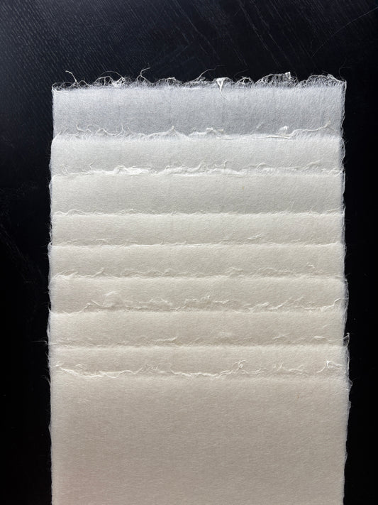 Japanese Paper, also known as "washi" (and also Rice Paper) is a high quality medium for artists, artisans, and crafters. It looks delicate but is very strong and is very absorbent. Each type of washi has its own tone, weight, and texture appearance. Sheets have a very smooth side and a slightly toothy side.